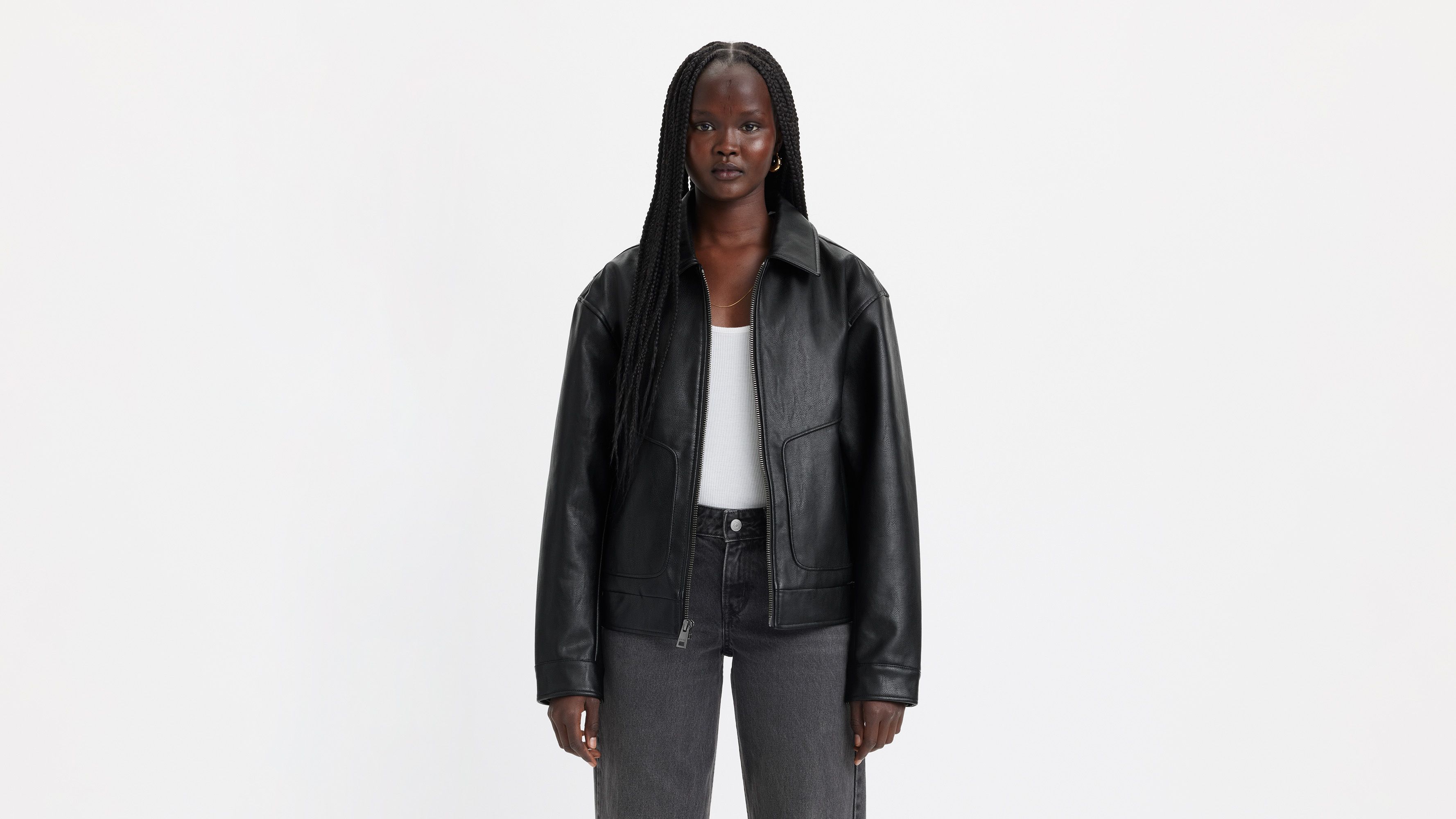 - メンズ > ジャケット・アウター > ジャケット・アウター US Levi's Leather Bomber Jacket Black Faux Leather Retro Dad Bomber - Black | Levi's® US