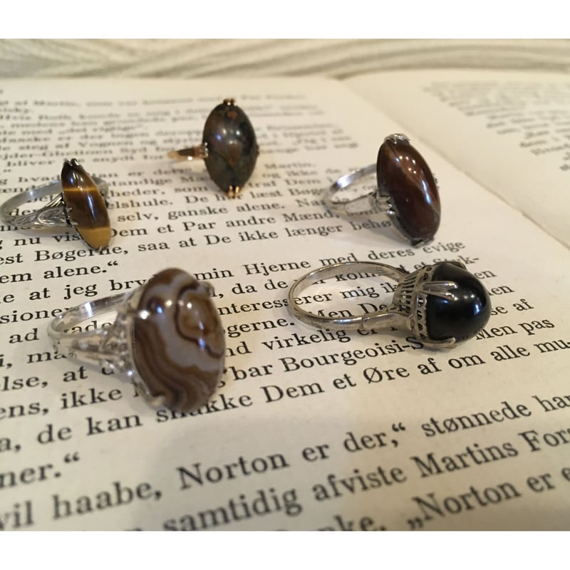 - レディース > アクセサリー > T*Z様 昭和 天然石リング 14KWG ヴィンテージリング アンティーク 昭和 ヴィンテージ天眼石(ブラウン縞メノウ)リング 唐草台座 K14WG 未使用
