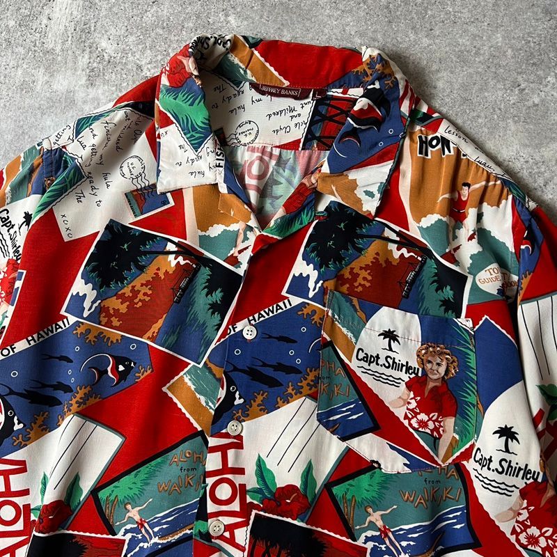 | 商品の特徴 | 50s 60s レーヨン シャツ 総柄 プリント オープンカラー ヴィンテージ。50s 60s レーヨン シャツ 総柄 プリント オープンカラー ヴィンテージ。50s 60s レーヨン シャツ 総柄 プリント オープンカラー ヴィンテージ。ご覧いただきありがとうございます。コムデギャルソン オムプリュス ベロア 切り替え ストライプ ロング シャツ。着用すると中間色の良さが発揮される珍しめのカラーですのでご興味のある方はぜひよろしくお願いいたします。Iron heart M ネルシャツ。古着 90s Goouch 水彩 アート 総柄 レーヨン シャツ 半袖 XL - 古着。こちらは1960年代のレーヨンシャツになります。色はライラック(薄パープル)の総柄刺繍入り中間色の1枚でサイズはSよりのMで良いサイズ感になります。【未使用美品】COMOLI / シープスキン シャツジャケット。二*パ様 CALEE セットアップ。最近のレーヨンシャツも高騰していると思いますが現在の価格よりも安くお出ししたいと思います。着丈 67cm身幅 50cm肩幅 44cm袖丈 59cm | ||
