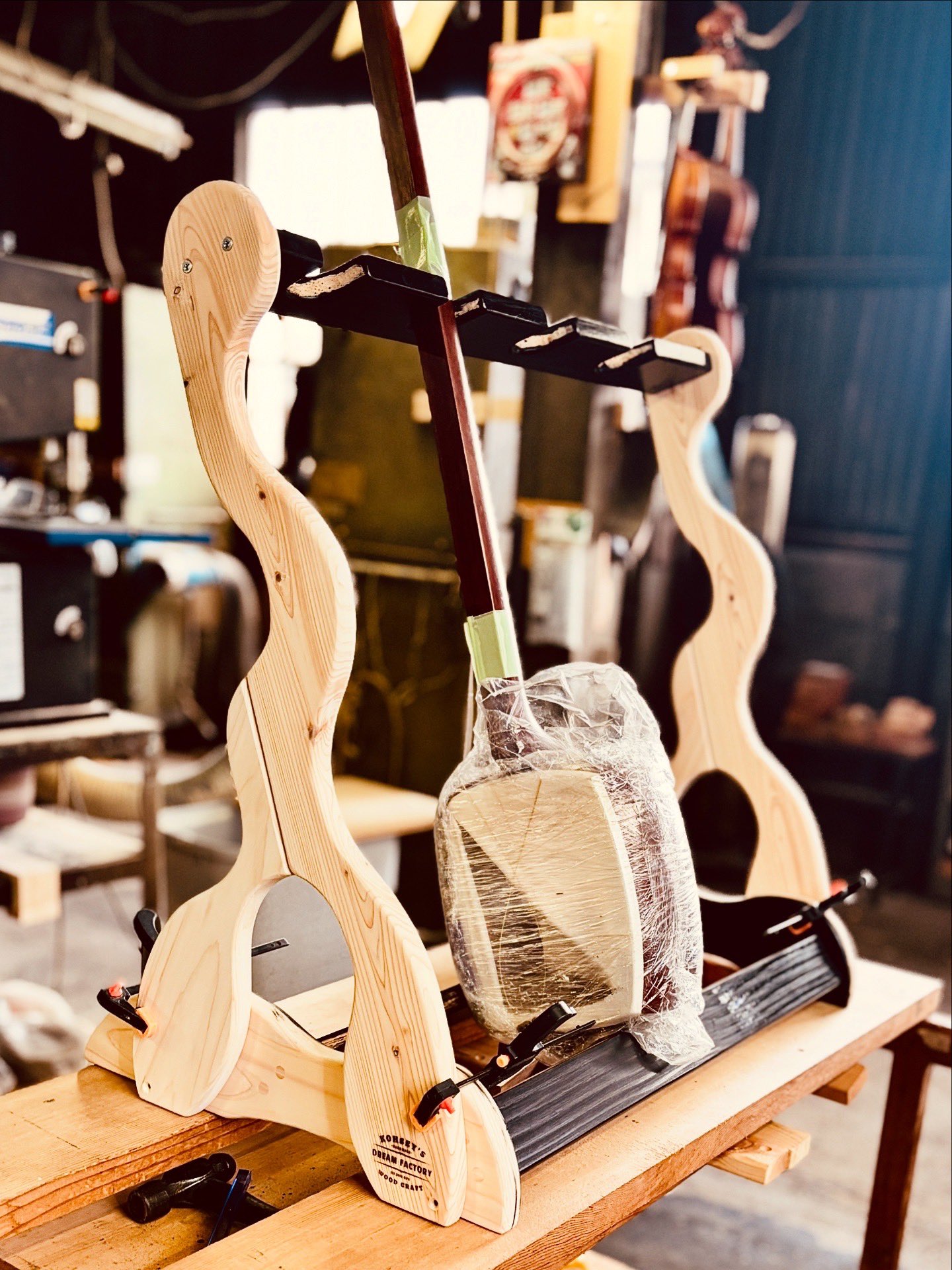 | メーカー名 | 3f2854 | ブランド名 | ♪手作り 三味線用スタンド木製 5丁並び 細棹 津軽 三線 教室にも♪ |