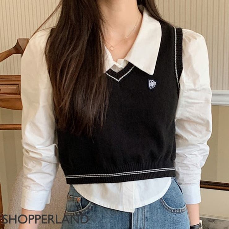 - レディース > トップス > 希少✨人気エンフォルド SHIRT KNIT PULLOVER シャツ ベスト SHOPPERLANDスタンフォードクロップシャツ+ニットベストセット 韓国