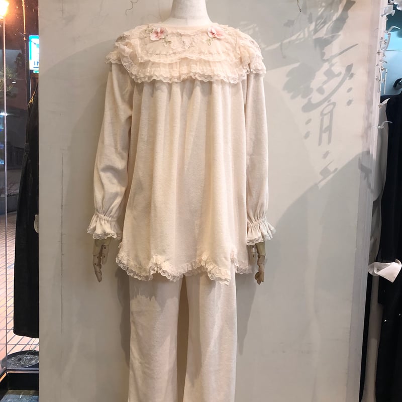 新品未使用さえらヒスクローネレースフリフリ付クリーム色パジャマセットルームウェア ヒスクローネ パイルパジャマ(フリーサイズ) | さえら POTECHINO