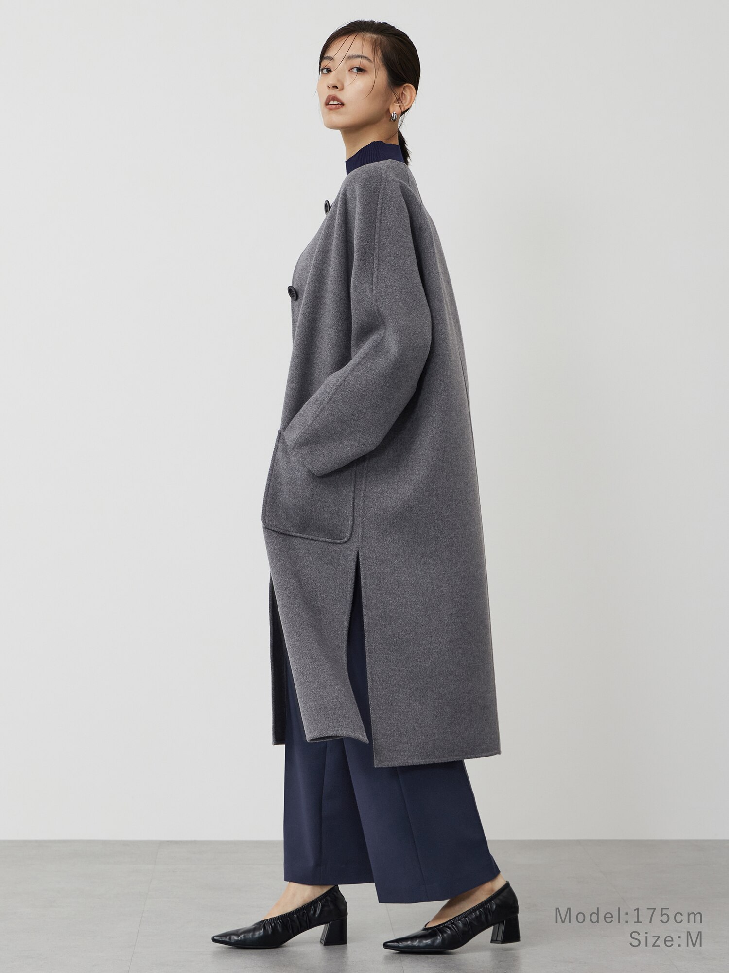 - レディース > ジャケット・アウター > 美品 プラステ PLST MANTECO ノーカラー ウール コート L グレー 美品 プラステ PLST MANTECO ノーカラー ウール コート L グレー PLST