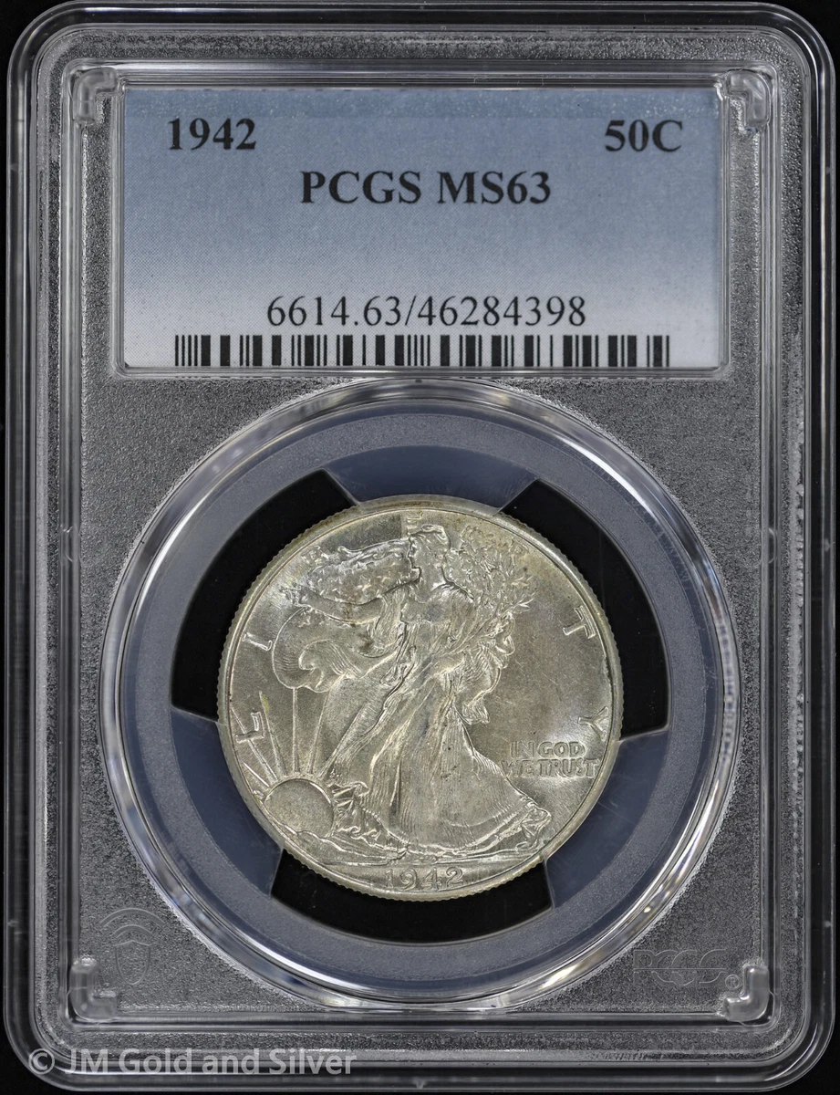 アメリカ ウォーキングリバティー銀貨1942 PCGS MS63 MS 63 Graded 1942 Year Liberty Walking Half Dollars (1916-1947