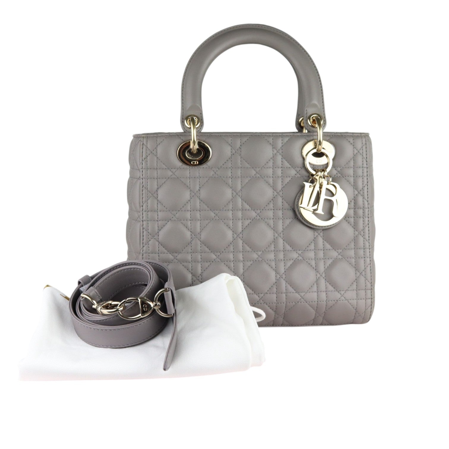 Dior レディディオール グレー ミディアムサイズ Christian Dior Medium Lady Dior Lambskin Quilted Grey GHW – Bag