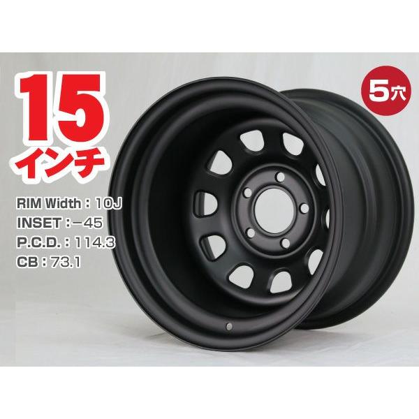 - 車 > タイヤ・ホイール > 15インチ スチールホイール 鉄チン ほぼ新品タイヤ付き!! 15インチ 鉄チンホイール 10J -45 5穴 PCD114.3 CB73.1 極太 深リム