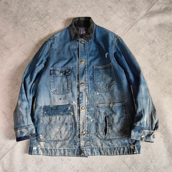 | 商品の特徴 | パッチワークリペア ビンテージ sears デニム カバーオール ジャケット。パッチワークリペア ビンテージ sears デニム カバーオール ジャケット。Searsデニムカバーオール 4ポケット Lサイズ パッチワークリペア。他にもリーバイス 501、カバーオール、danner、リオスオブメルセデスを出品しております。ジャケット・アウター mout recon tailor navy。最近古着屋さんでもリペア系のデニムは見かけなくなりましたのでお探しの方、お好きな方は是非。Carhartt カーハートアクティブジャケット。古着慣れされている方でしたら問題なく着用していただけるとは思いますが、メーカー品、ブランド品のような完璧をお求めの方はご購入ご遠慮下さい。UNUSED スエードレザーシャツ。b228。古着 70年代 シアーズ Sears WORK LEISURE デニムカバーオール USA製。↓↓↓#ちょむclothing◾️Size実寸(平置き直線)肩幅:約49cm脇下身幅:約63cm着丈:約86cm袖丈:約64cm希少なビンテージのカバーオールに大胆にリペアを施したとても雰囲気のあるデニムです。bigmac、payday、lee、ヘッドライト、カーハート、us.navy、army、大戦のカバーオールやリーバイスのファースト、セカンドをお探しの方や東洋、ウエアハウス、orslow、アナクロノーム、レミレリーフ、ハリウッドランチマーケット、kapital boro、ラルフローレン、ナイジェルケーボン、RRLなどがお好きな方にもオススメです。r*n様 即購入可 ヨウジヤマモト ブルゾン。韓国限定 ノースフェイス リバーシブルジャケットM。雰囲気をそこなわない用に敢えて簡易的なステッチ、手縫いを使用している箇所もあります。リペアにはユーズドのデニム、岡山児島産のデニムを使用していますので色落ちが進むとまたよい雰囲気になるかと思います。Maison Margiela NO COLLAR JACKET サイズ46。マウンテンハードウェア ×N. HOOLYWOOD ノーカラーダウン S。神経質な方のご購入はご遠慮下さい。ビンテージ品にご理解ある方のご購入お願いします。tmhr テンダーロイン デッキJKT | ||