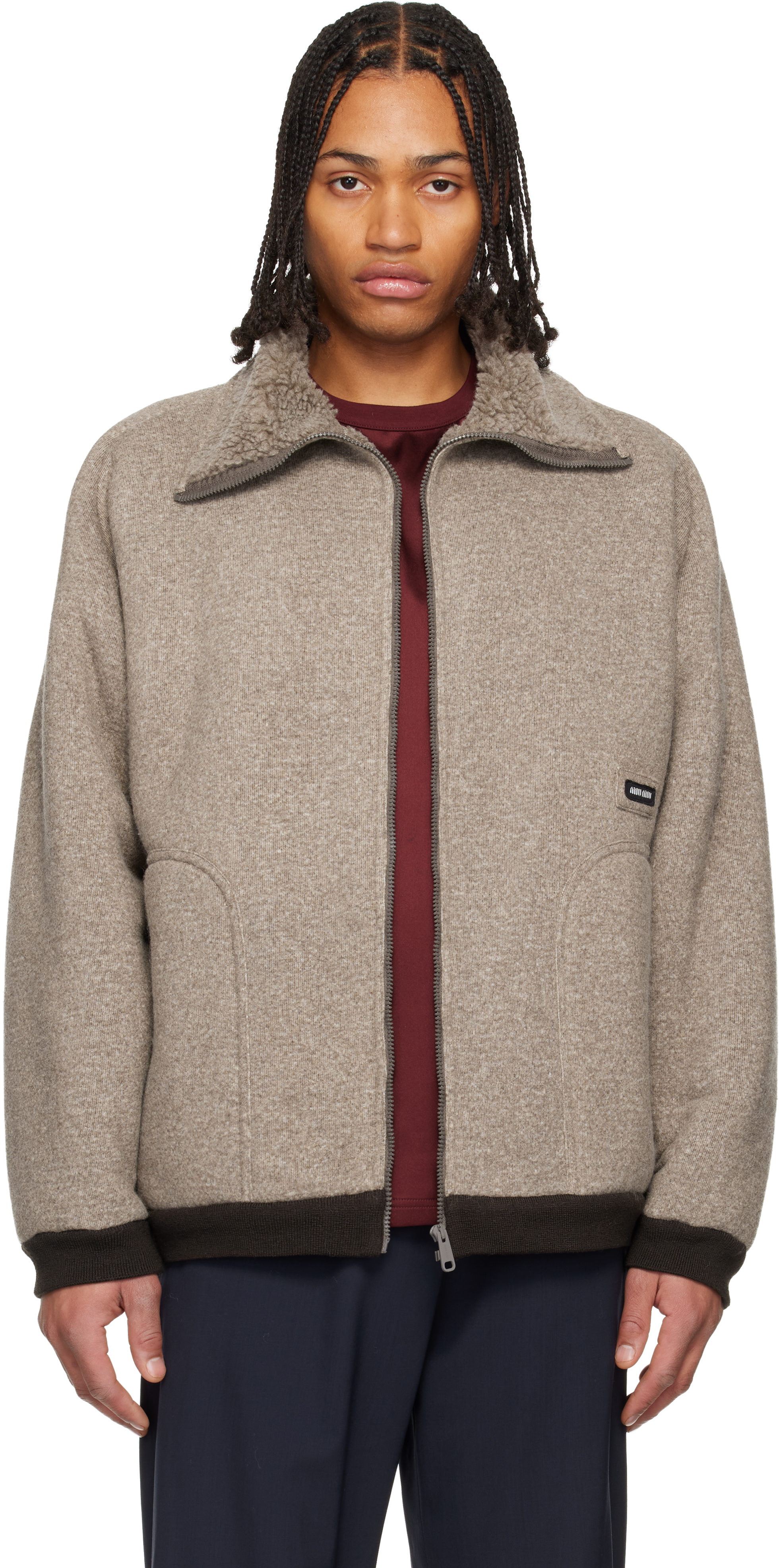 - メンズ > ジャケット・アウター > ジャケット・アウター Miu Miu archive Wool Jacket size 44 Miu Miu: Brown Fleece Zipper Blouson Jacket | SSENSE Canada