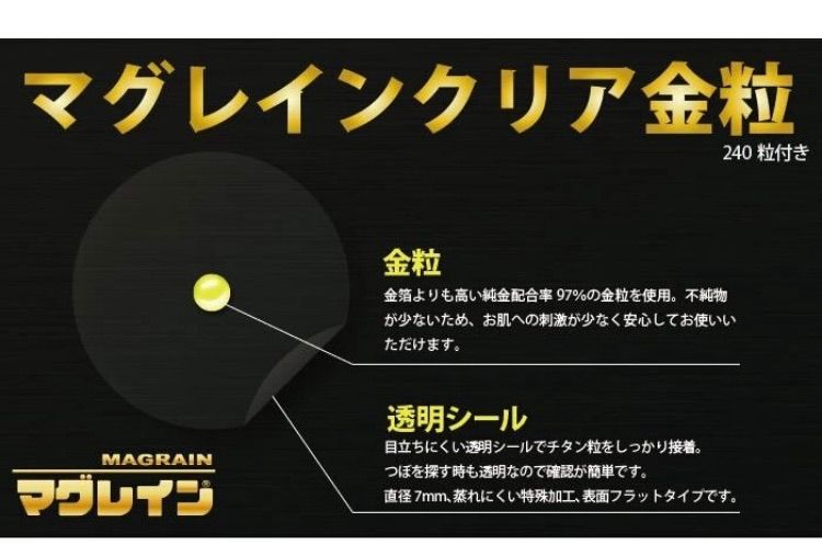 | 商品の特徴 | マグレイン クリア 金粒 2400粒 2400粒 マグレインクリア(透明)金粒。マグレインクリア金粒 2400粒 マグレイン クリア 金粒 2400粒。81IzsWQu9HL.jpg_BO30,255,255,。楽天市場】粒鍼 マグレインクリア 金粒 2400粒 阪村研究所の通販。マグレイン2400粒新品未開封 | ||