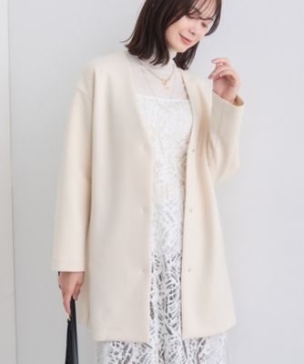 - レディース > ジャケット・アウター > 【美品】ebure ライトタフタノーカラードルマンスリーブコート オフホワイト 秋/軽羽織り】ノーカラーミドル丈ライトコート(2002541667