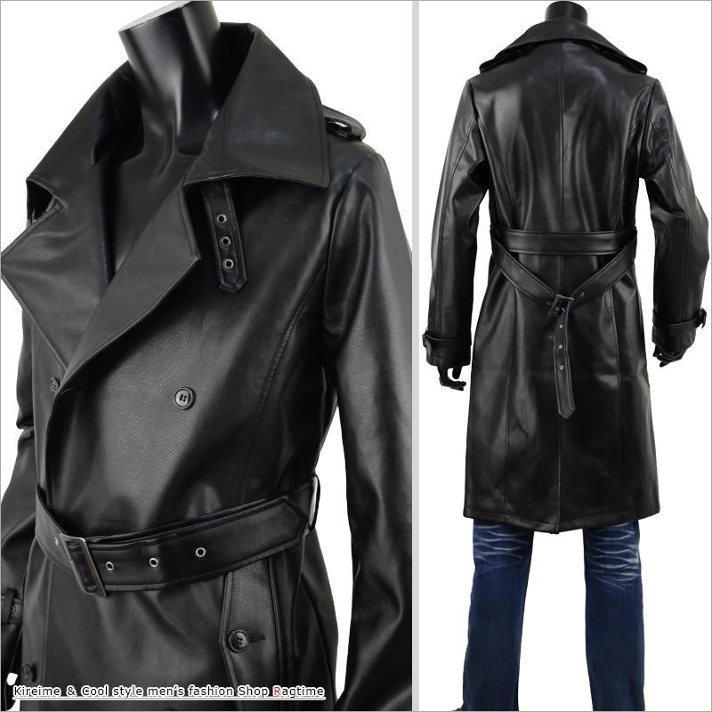 - メンズ > ジャケット・アウター > 【マキシ丈 M位】リアルレザー ダブル トレンチコート オールレザー 本革 黒 マキシ丈 M位】リアルレザー ダブル トレンチコート オールレザー 本革