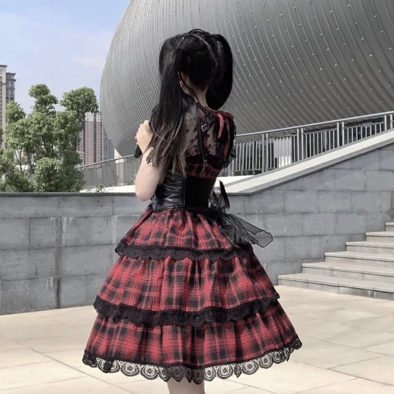 | メーカー名 | f1dde | ブランド名 | ベイビー 赤黒チェックワンピース ロリータ 玲様着用】アイドル風赤チェックワンピース |