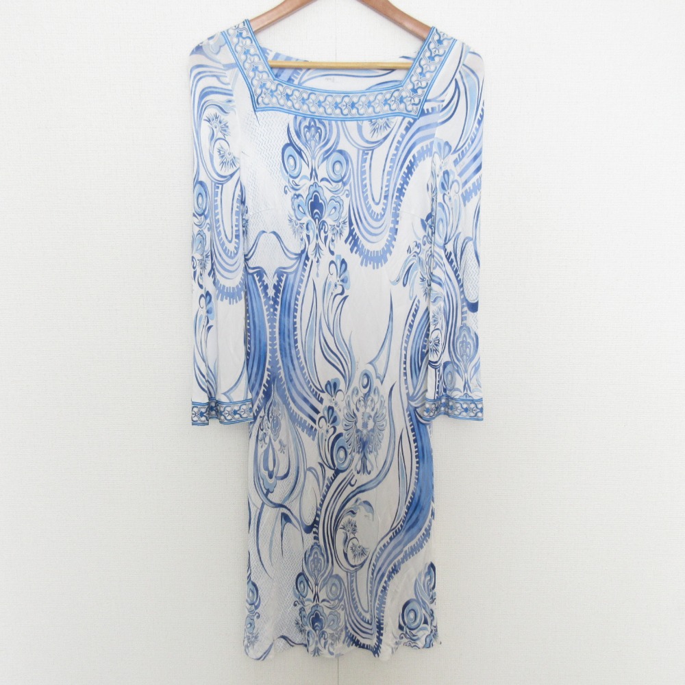 - レディース > ワンピース > エミリオプッチ 膝丈ワンピース スクエアネック 長袖 裏地付き ブルー ベルト 楽天市場】エミリオプッチ Emilio Pucci レディース ワンピース ドレス