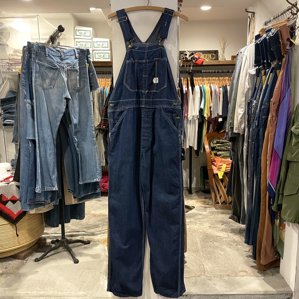 | 商品の特徴 | USA 製 ヒッコリー オーバーオール ヴィンテージ DUCK HEAD USA 製。1960s〜【DUCK HEAD】エプロン付きダブルニーヒッコリーオーバーオール。1960s〜【DUCK HEAD】エプロン付きダブルニーヒッコリーオーバーオール。1960s〜【DUCK HEAD】エプロン付きダブルニーヒッコリーオーバーオール。ヒッコリーストライプには爽やか効果あり◎ダブルニーでエプロン付きとなかなかな贅沢仕様◎使用感の無いグッドコンディション◎サイズウエスト 84cm 股上 61cm股下 74cmわたり32cm裾幅 25cm | ||