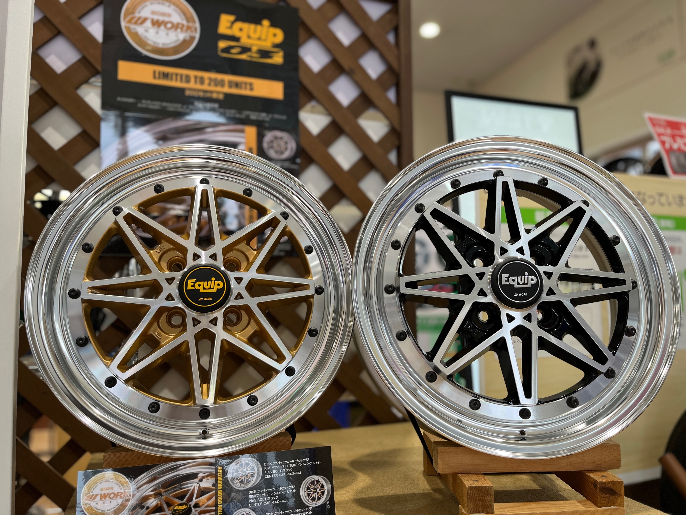 | 商品の特徴 | WORK エクイップ03 限定色!!! | 店舗おススメ情報 | タイヤ館 高松。値下げしました WORK エクイップ03。WORK エクイップ03 ディスク セミオーダーカラー<単品オーダー不可。希少サイズ】WORK Equip エクイップ 03 15in 7.5J+16 PCD114.3。エクイップ0315インチ5.5j インセット35ガリ傷はないですが洗車、線状傷ピアス周りの多少腐食があり1センチ無いくらいのえぐれよく観ないと分からないど思いますが全体的に綺麗方だと思いますタイヤに関しては個人差がありますが今年いっぱいなら使用出来ると思いますが多少の片減りがあります当方はハイゼットジャンボに使用してますそのままだとハミタイになりますので流行りのフェンダー装着おすすめします | ||