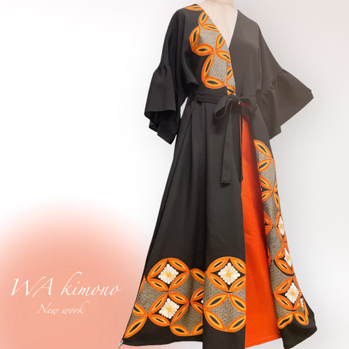 | メーカー | 彩 着物リメイク♪ 黒留着物からロングワンピース❣️丈138cm |