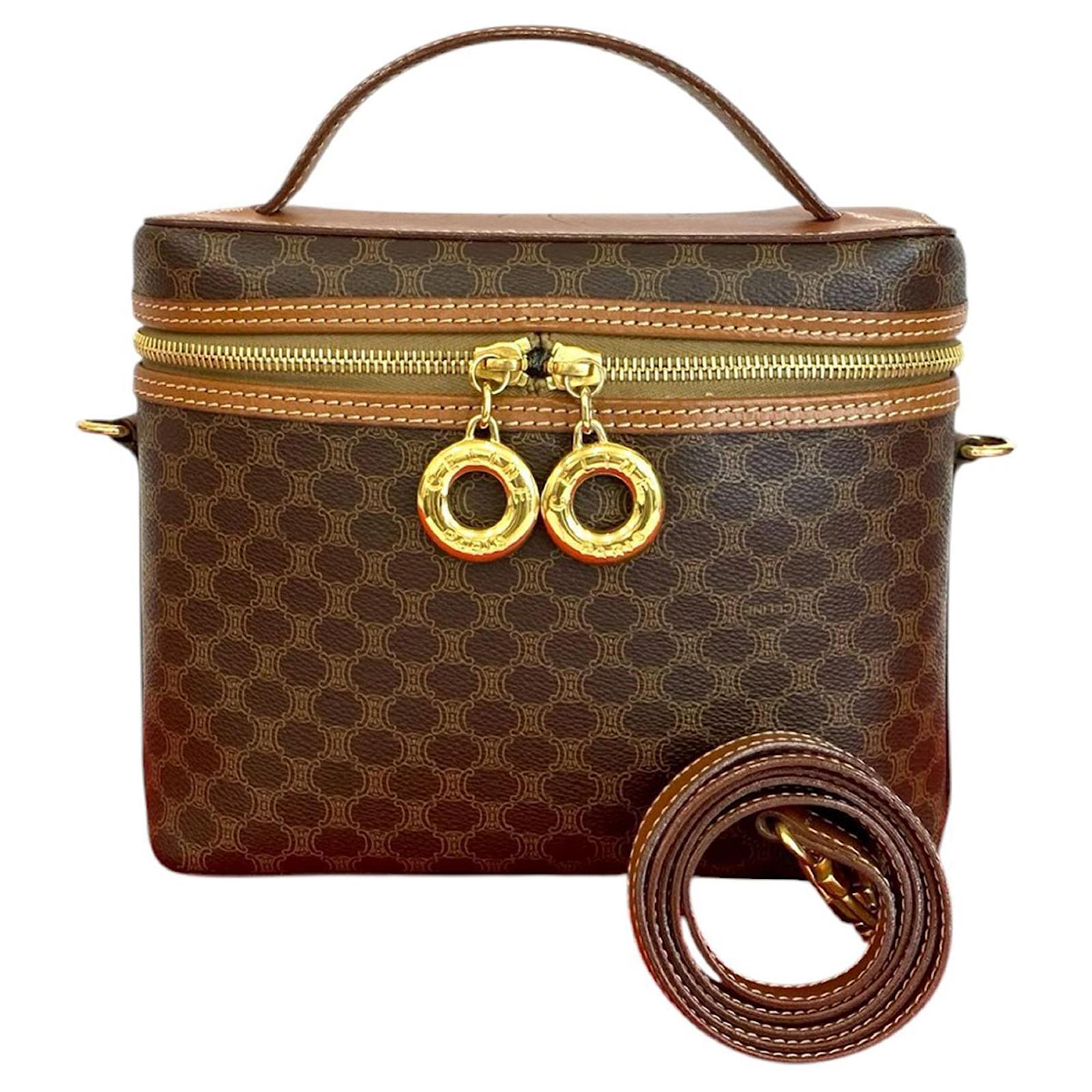 バッグ Celine Macadam Vanity Pouch Bag Brown Céline Celine Brown Macadam Coated Canvas Vanity Bag Cloth Cloth