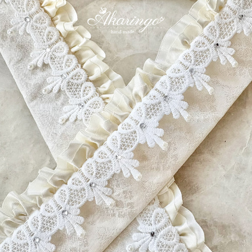 | メーカー名 | 326de | ブランド名 | 505 豪華レース帯揚げ 半衿 パールとラメの重ね衿 パール帯締め お飾り3点 |