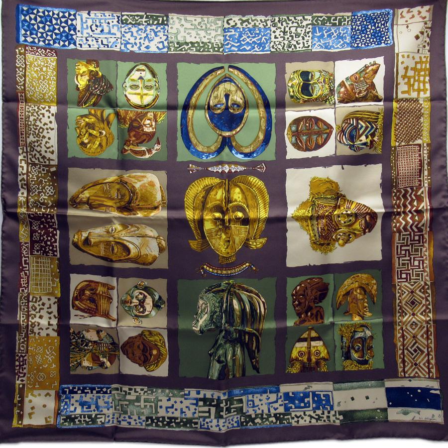 | 商品の特徴 | HERMES(エルメス) スカーフ カレ90 PERSONA ペルソナ 100%シルク。HERMES エルメス スカーフ カレ90 『PERSONA(ペルソナ)』 仮面柄。HERMES エルメス スカーフ カレ90 『PERSONA(ペルソナ)』 仮面柄。「エルメス カレ90 ペルソナ シルクスカーフ」です。HERMES エルメス スカーフ カレ90 『PERSONA(ペルソナ)』 仮面柄。このスカーフは、アフリカの仮面をモチーフにした「ペルソナ」というデザインです。美品 お洒落 エルメス シルクスカーフ カレ90 ボルデュック リボン 箱 橙。- 色: ネイビー、ゴールド、ベージュ、青- 素材: シルク- サイズ: 約90cm x 90cm- 特徴: アート的な印象を与える装飾的なスカーフカラー...ネイビー系柄・デザイン...プリント(ロゴなど)汚れ・破れ・臭いなど...なし | ||