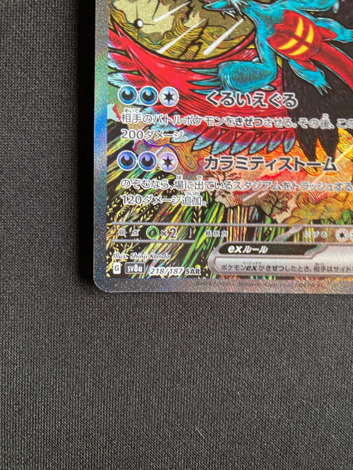 | 商品の特徴 | ポケモンカード まとめ売り SAR 17枚。ポケモンカード まとめ売り 伝説キラコレクション・SU・プロモカード。ポケモンカード まとめ売り SAR 17枚。ポケモンカードのコレクションのまとめ売りになります。熱風のアリーナのプロモ未開封パック6パックと目玉カードはピカチュウsarやブイズ系のsarになります。またブラッキーマスボミラーもあります。(写真ではわかりにくいですがマスターボールミラーになります。)詳しい内容は写真をご覧下さい。基本的にこちらのカードはパックから開封後、即スリーブに入れて保管していましたが、初期キズなどもあると思いますのでプレイ用でよろしくお願い致します。全てパックから自引きしたワンオーナー品になります。ファイルごと発送致します。神経質な方のご購入をお控え下さい。製品上、すり替えや詐欺防止のため返品・返金はお断りさせて頂きます。主なカードは熱風のアリーナ未開封プロモ6パックピカチュウSARブイズ系のSARエーフィマスボミラー、ブラッキーマスボミラーピカチュウURクロバットSARなどになります。その他→ブラッキーマスボのページにあるアリゲイツはモンボミラーですが、その他は全てマスボミラーです。シャワーズ、ブースターはモンボミラーになります。よろしくお願い致します。。ポケモンカード 25th ANNIVERSARY プロモカードパック 4パック 楽天。HUNTER x HUNTER グリードアイランド ハイエストセレクションセット。ポケモンカード グラードン バンギラス AR 各10枚 20枚セット まとめ売り。ポケモンカード 熱風のアリーナ カートン。レシラム&リザードンGX SR PSA10。Vスターユニバース シュリンク付 3箱未開封 ポケカ ポケモンカード。【psa10】ニャオハ AR 中国限定イラスト 宝石パック vol 1。ポケモンセンター フクオカ スペシャルBOX。仰天のボルテッカー 1BOX【未開封 シュリンク付】。PSA9 ピカチュウ カードe プロモ 038 ポケモンフェスタ 2002。ポケモンセンター カナザワ オープン記念 スペシャルBOX 未開封シュリンク付き。ポケモンカード151 シュリンク付きBOX。PSA10 メガガルーラex SAR メガシンフォニア ポケモンカード ポケカ。ポケモンカード ブラックボルト ホワイトフレア【シュリンク付き】各1BOX | ||