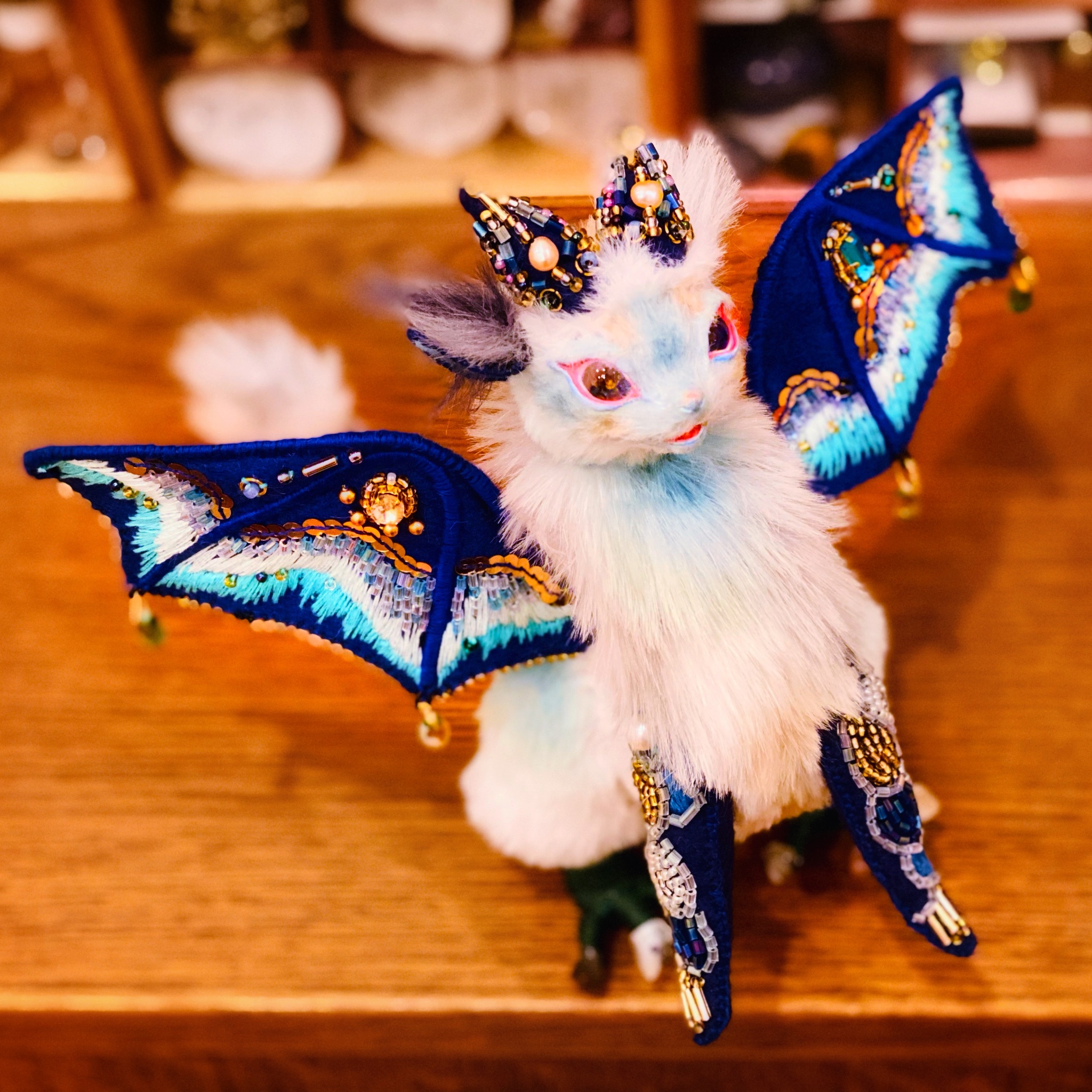 | 商品の特徴 | amigurumi ハンドメイド・手芸 ぬいぐるみ 作家 白 ドラゴン ハンドメイド。ドラゴンアートドール、OOAKアニマルリアル、ファンタジークリーチャー。ミニかわいいドラゴン人形のふわふわペットラグドールペンダント。妖精姫龍【妖精龍属】水の力を操り、主となる者の心の浄化を成すことが出来る龍☆水の月になると喜び、尻尾についた石の煌めきは増幅し美しく輝く☆光を浴びるほどに暗闇で、瞳が眩く光り、見る者に癒しを与えるという☆撫でるほどに良くなつき、主に仕える☆『妖精姫龍』名前のごとく、鱗が華やかな妖精龍を言う☆天女のように空を舞う龍☆【蓄光ガラスの瞳】★見る程に…吸い込まれそうなブルーの瞳で魅了し、暗闇で不思議な光りを放ちます☆★職人が1つ1つ作り上げた琉球蓄光ガラス使用しています☆色の付いたガラスを溶かし鉄心に丸め、水飴のように溶けた状態のガラスに、銀箔(ぎんぱく)を重ね、特殊な技法で作られた琉球蓄光ガラス、ケラママリンガラスを使用☆アクリル毛軽量粘土樹脂粘土アルミワイヤー高級琉球ガラス(ケラママリン)オーロラガラス 縦 約34センチ横 約5センチ【作品について】お洗濯は出来ません☆ウロコは染色しております☆消臭剤やアルコールスプレーなどの消毒などはお控え下さい☆アルミ針金を全身に使用している為、体を動かすことが出来ます☆(無理に動かすと破損の原因となりますので、お優しいお取り使いをお願い致します☆)※あくまで観賞用ハンドメイド作品ですので、抜毛、細かな傷などある場合がございます。完璧な物をお求めの方は、購入をお控え下さい☆※まんまるんアートドール牧場、Art Doll Forestの作品は、ヤフオク、メルカリ、minneのみ販売しております☆アマゾンなど、その他サイトでの販売は一切しておりませんのでご注意下さい★お手入れは優しくクシなどでとき、指で優しく撫でてセットしてください☆※素人が手縫いで作り上げた作品の為、至らぬ箇所があるかもしれません☆ご承知の上でのご購入をお願い致します☆#まんまるんアートドール牧場#ケモノ#蓄光#アートドール#ハンドメイドぬいぐるみ#ハンドメイドドール#龍#妖精#ドラゴン#幻獣#妖精龍※まんまるんアートドール牧場、Art Doll Forestが製作する全ての作品は、作者に知的財産及び著作権があるものとします。。アートドール ドラゴン。ちいりページ | ||