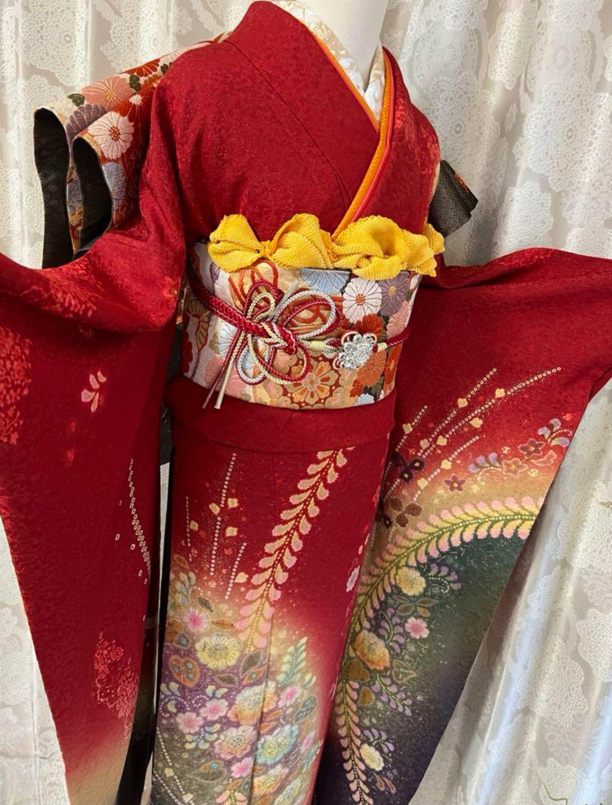 | 商品の特徴 | Y3496◇美品 正絹 総絞り 金駒刺繡 手縫い仕立て 成人式 振袖 Y3496。Y3496◇美品 正絹 総絞り 金駒刺繡 手縫い仕立て 成人式 振袖 Y3496。Y3496◇美品 正絹 総絞り 金駒刺繡 手縫い仕立て 成人式 振袖。* … * … * … * …* … * …* … * … * … * …*… * …*ご覧頂きましてありがとうございます❀´-レッド×ブラック色の総絞りの地に、金駒刺繍でおめかしした花々が品よく咲く♪“成人式”振袖❀肌触りがなめらかで柔らかい“正絹”素材◎所々に絞り特有のアクや薄汚れがありますが美品といえるほど比較的良い状態です◎体に沿うように馴染み良い“手縫い仕立て”の一枚。ひなや工房 高級正絹 袋帯「くむ・あむ・おる」 未使用品。画像8枚目をご参照ください。Y2612◇金駒刺繡 手縫い仕立て 成人式 正絹 振袖 着物。華やかな着姿で、最高の晴れ舞台を迎えませんか♪ ◎ フォロワー様 限定 お値引き ◎詳細はプロフィール欄をご覧ください♪※こちらの帯や小物類は撮影用のため出品しておりません。スムーズなお取引ができるよう、ご購入前にプロフィール欄のご一読をお願いいたします❀´-* … * … * … * …* … * …* … * … * … * …*… * …*状態【A】パールトーン加工所々に絞り特有のアクや薄汚れがありますが、比較的良い状態です。【匿名配送】WAKKA ワッカ 半幅帯。monchiやまと誂上質正絹 手刺繍金彩金糸 紫グラデーション 裄70。◆状態ランク◆---S--- 新品未使用---SA-- 未使用に近い---A--- 目立った傷や汚れなし---B--- やや傷や汚れあり---C--- 傷や汚れあり◆採寸表◆身丈 : 166㎝(肩から)裄 : 72㎝肩幅 : 35㎝袖幅 : 37㎝袖丈 : 112㎝前幅 : 26㎝後幅 : 32㎝素材 : 正絹(袷)折代 : 身丈(内揚げ:前6㎝・後8cm) 裄(身頃側:2cm・袖側:2cm)袖丈( 6.5㎝)* … * … * … * …* … * …* … * … * … * …*… * …*振袖はこちら❁ #百華振袖振袖用帯はこちら❁ #百華振袖用袋帯振袖関連小物❁ #百華振袖小物振袖用長襦袢❁ #百華振袖用長襦袢身丈(肩山から)...165〜169cm | ||