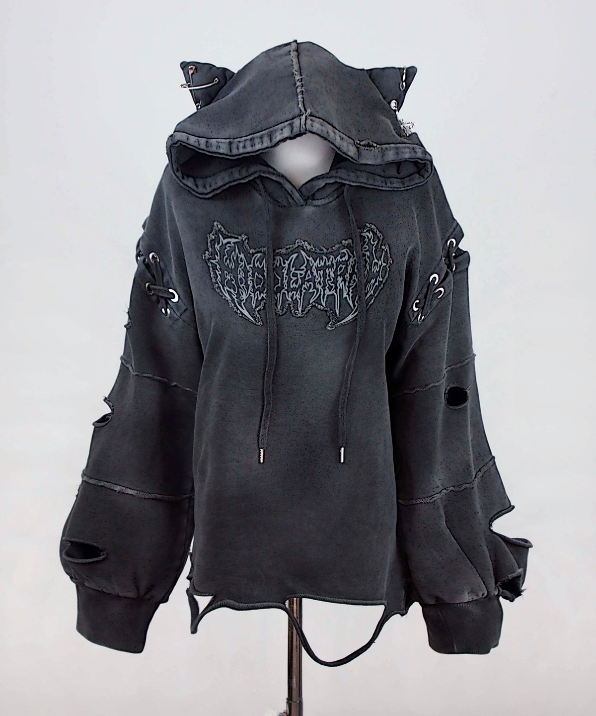 ‼️セール‼️ HIDOLATRL THEODOL ダメージオーバーサイズパーカー 再販《ダメージオーバーサイズ猫耳パーカー》D.GRAY | HIDOLATRAL THEODOL