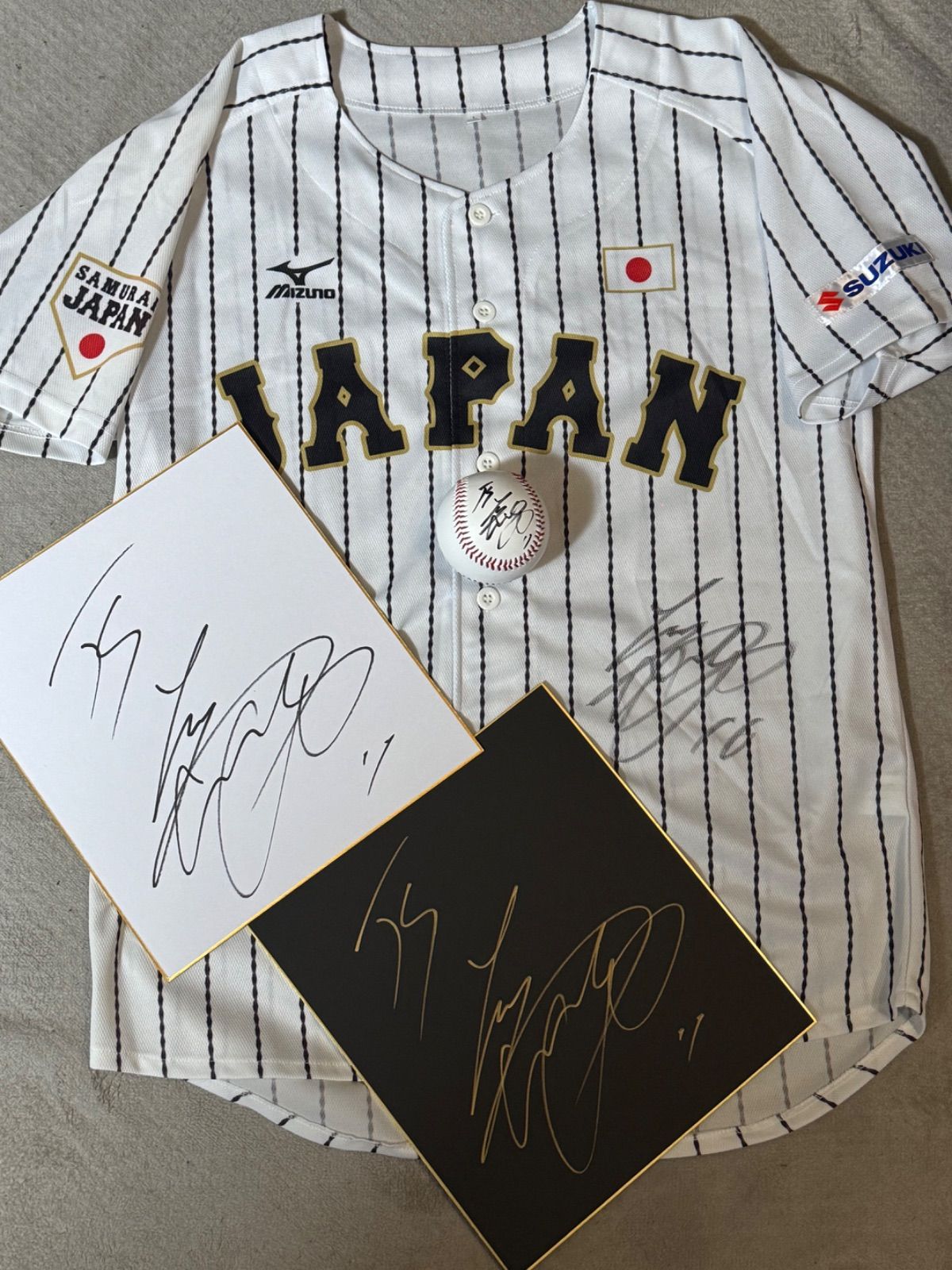 | 商品の特徴 | 豪華3点セット】大谷翔平 直筆サイン ユニフォーム ボール 色紙 日本。豪華3点セット】大谷翔平 直筆サイン ユニフォーム ボール 色紙 日本。侍JAPAN 大谷翔平 直筆サインユニフォーム ボール 色紙 3点セット WBC。【商品説明】3点セット①日本ハムファイターズ レプリカユニフォーム 大谷翔平選手の直筆サイン入り② 大谷翔平選手の直筆サイン入り色紙③ 大谷翔平選手の直筆サイン入り硬式ボール【状態】暗所での保管につき未使用に近い【サイズ】フリー【詳細】大谷翔平選手の日本ハム時代の直筆サインとなります。千葉ロッテマリーンズ #0 荻野貴司 サイン入ホームユニフォームXLサイズ。折れや濡れ対策を行い発送させていただきます。武田。侍JAPAN 大谷翔平 直筆サインユニフォーム ボール 色紙 3点セット WBC。ユニフォーム、ボール、色紙の3点セットとなります!今や世界一の選手となりました。この機会にいかがでしょうか?【発送】1〜2日での発送となります。ロサンゼルス ドジャース 大谷翔平 ゴールドユニフォーム ユースL。【復刻】新品未使用 石井琢朗 ユニフォーム。お値段交渉などお気軽にコメントください!よろしくお願いします。 | ||